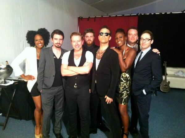 | Looking great guys and girls!! @robbiewilliams @tomlongworth @KarlBrazilDrums @nayannaholley #RobbieLive2013 :)) https://twitter.com/RWFriendlies/status/332600723244187648