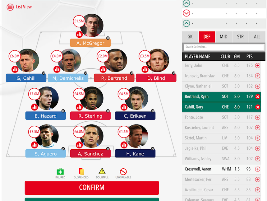 | Dreamteam help: I'm 3rd in my league.This is my team,nxt tweet will be what I’m thinking of changing it to: thoughts?
