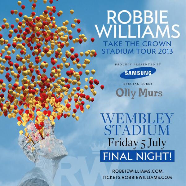 | With the Take The Crown Stadium Tour 2013 now little more than a week away, tour sponsor Samsung are offering you the chance to get your hands on tickets to one of Robbie's Wembley shows when they release 1,000 balloons at a secret London location tomorrow!
