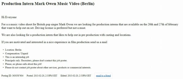 На немецком амазоне можно сделать заказ сингла Марка Оуэна в формате MP3 5 мая
